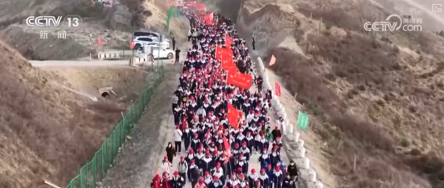 4月3日,在宁夏固原,固原二中和固原弘文中学以及社会各界人员共3000多人徒步前往固原市彭阳县任山河烈士陵园祭奠英烈。